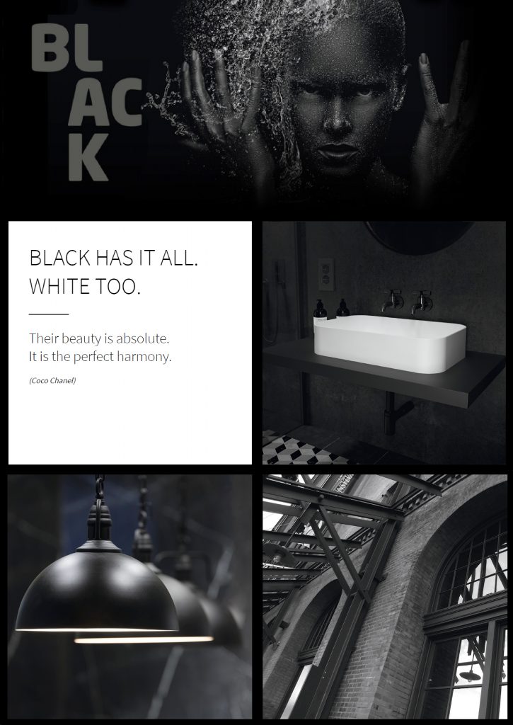 Black is a powerful, elegant and luxurious colour. It enhances shapes and emphasises contrasts. Black also radiates energy and vitality.