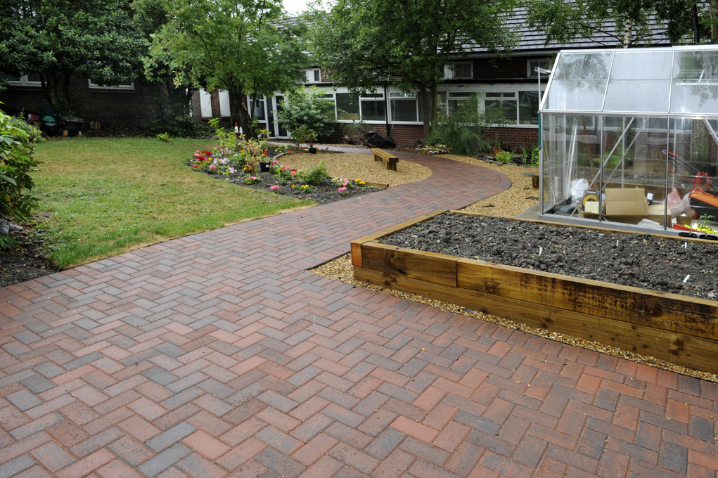 The makeover took place at the end of June, when 150 volunteers grouped at Pipworth School for a full day. In transforming the courtyard, Dan’s team built a new path using Omega Brindle Concrete Block Paving and Golden Gravel from Brett Landscaping before completing the project by adding raised beds and a greenhouse for planting vegetables.