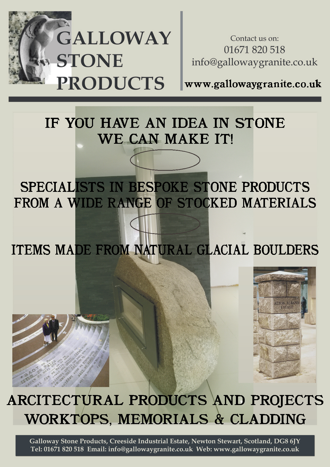 Galloway Granite stonemasons, was established by Robert William Mackenzie in southwest Scotland in 1928. Initially producing hand-crafted, headstones from local Creetown & Dalbeattie granites for local trade, the company has developed and diversified over the following 3 generations to provide a huge variety of quality masonry products to clients nationwide. Having recently relocated to premises in Newton Stewart, we offer a full range of monumental and architectural stoneworking skills and products. As a progressive, family-owned company, we believe we are able to provide unrivalled levels of service and skills for your natural stone requirements.
