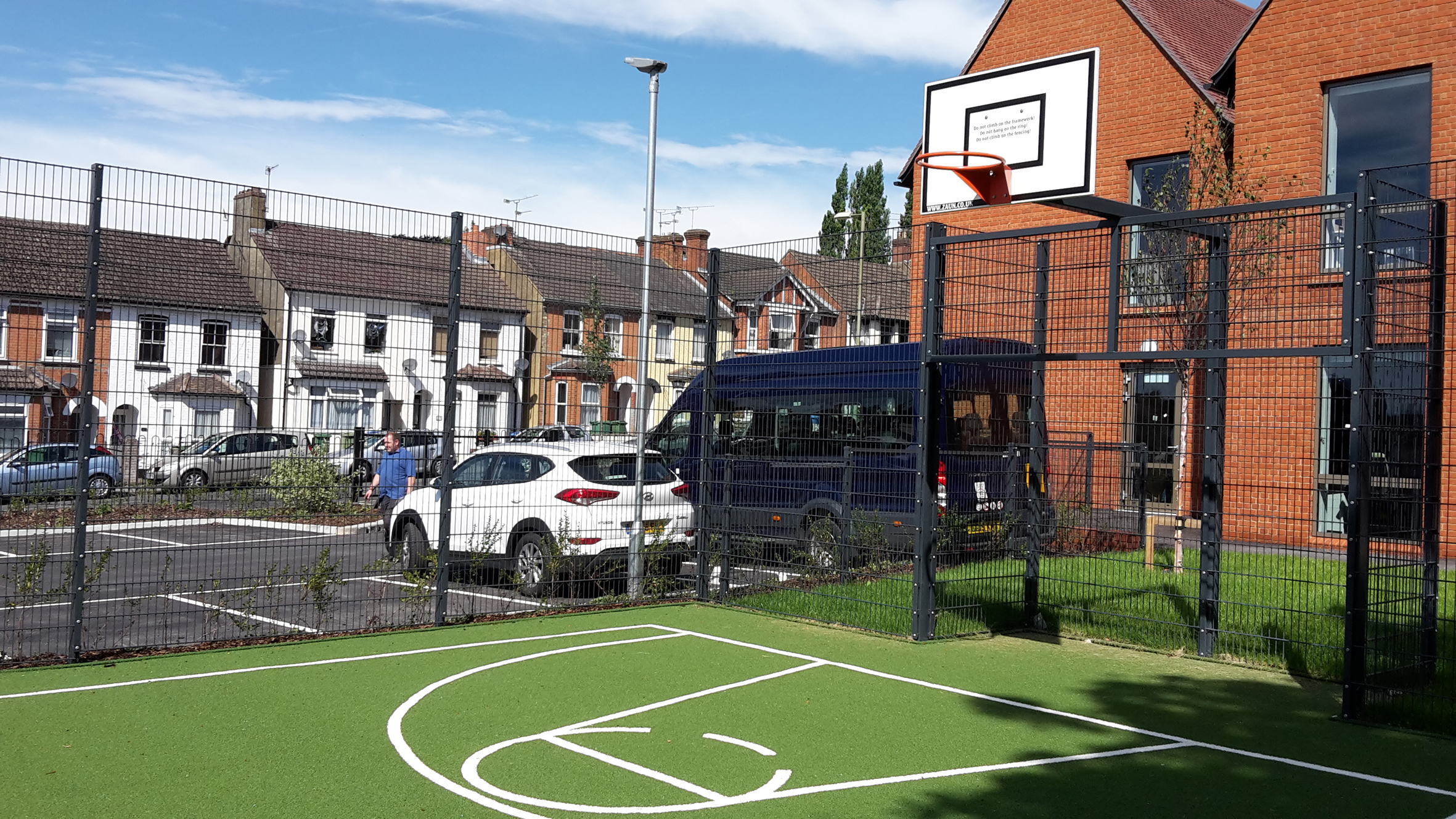 Farnham-based PRO Fencing, the fencing division of WL West & Sons Ltd, installed the basketball court using 3m-high Duo8 steel fencing from Zaun Ltd, with matching 1.2m-high spectator railings to one side.