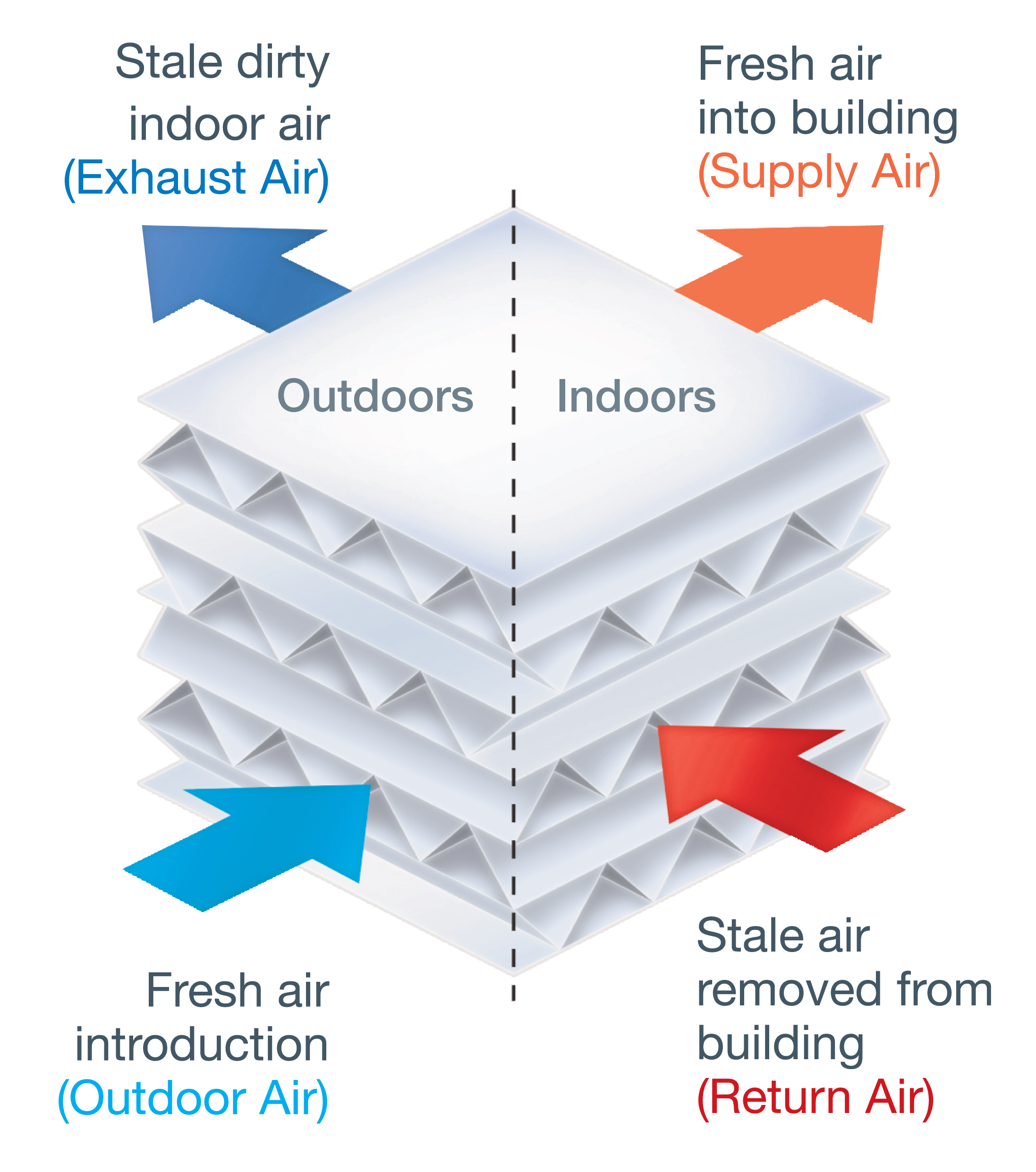 These ‘airtight’ premises often need effective mechanical ventilation to combat the build-up of stale air and excess humidity. The Lossnay system helps achieve this whilst recovering up to 89% of the heat energy from the outgoing air to reduce the amount of energy needed to bring the fresh, incoming air up to room temperature.