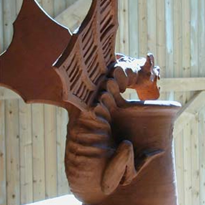 RRN116007All our pieces are made at No 9 Studio and Mole Cottage. All of our chimney pots including the Dragon Chimney Pot created by Marek Drzazga are made on site as well as our full range of Heraldic Beasts; Phoenix, Griffin, Hounds along with Crosses, Celtic Crosses, Ball and Spire and all manner of Finials. We also design and manufacture Ceramic Murals for Interiors and Exteriors, for Hotel Lobbies and Swimming Pool areas, with some of our designs on display at Mole Cottage.