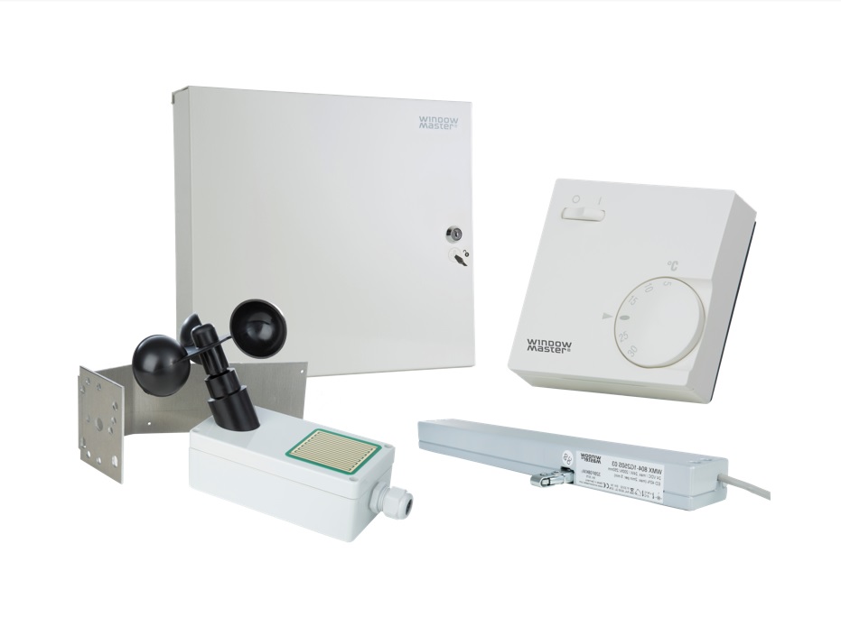 The components that can be used to create a MotorLink® system include WindowMaster’s 24V 250mm slim-line Chain Actuator, the 24V 10A Control Unit, the Wind and Rain Sensor and the Room Thermostat.