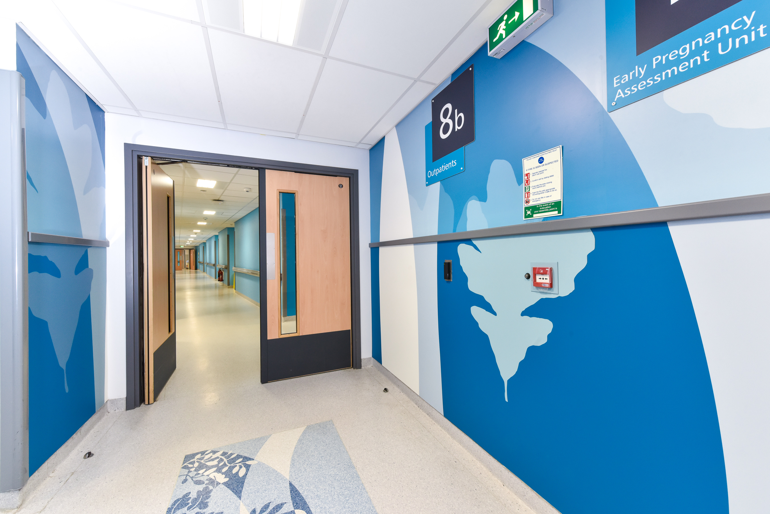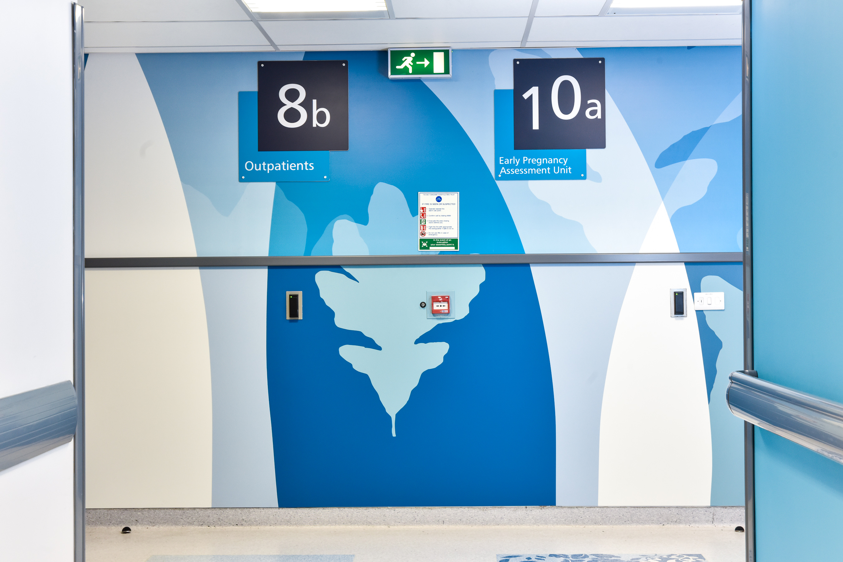 Working on the prospective of offering a more pleasant and non-clinical looking environment to patients, staff and visitors, the external entrances and gateways to the departments of the hospital are decorated with printed graphics using aesthetically pleasing colours and designs.